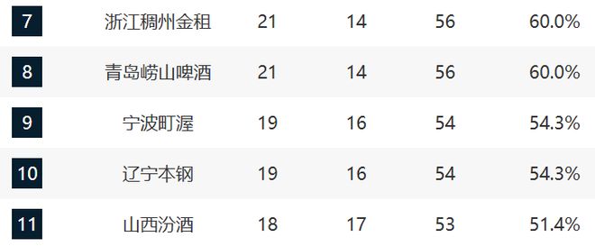 宁波、辽宁和山西分别是9-11。这轮辽宁取胜的情况下,他们再度追平宁波。甚至目前他们签约了新大外,首秀还行,不知道下场怎么样。山西目前的起伏还是太大了,攻守都不行,这轮比赛打得一塌糊涂。