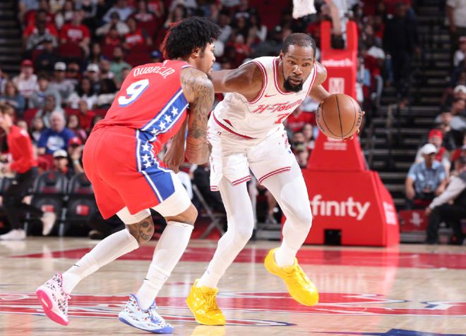北京时间4月10日,NBA常规赛继续进行,火箭主场对阵76人。火箭此前战绩为50胜29负,和湖人战绩相同,因胜负关系暂列西部第五。不过最近这波7连胜,球队士气提升明显!伊森开始恢复到上赛季能拼能抢能冲的状态,阿门和申京的二人转效率也很高,霍勒迪能控一控球,杜兰特维持基本产量输出,球队很稳定。火箭想拿到季后赛首轮主场优势,那本场比赛是必须要拿下的,最后两场打森林狼和灰熊也要火力全开,他们必须比湖人多赢一场,才能升到第四!但由于和掘金胜负关系也处于劣势,火箭基本难拿西部第三!