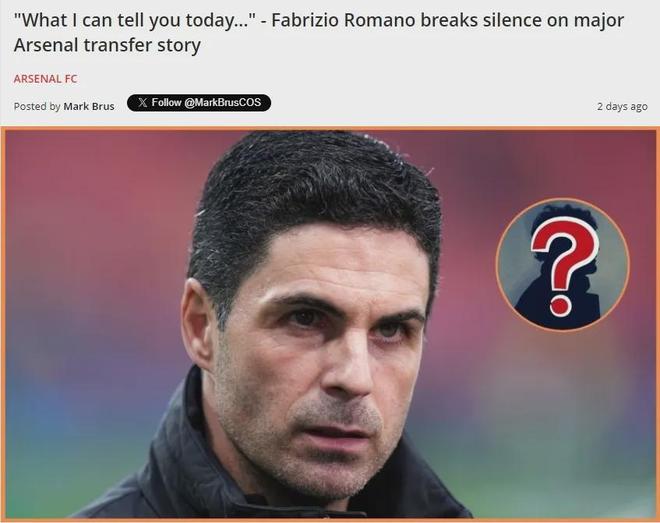 罗马诺在YouTube频道中谈到了阿森纳和布鲁日前锋特雷索尔迪的传闻,最近法尔克和德国天空体育将这名新星和枪手联系在了一起。