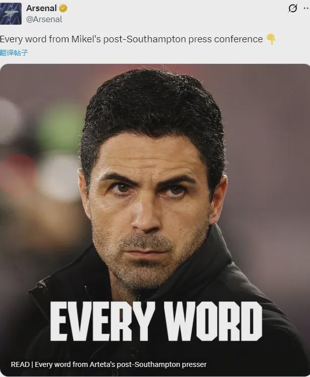 阿尔特塔出席了赛后新闻发布会,我们来看看阿森纳主帅谈到了哪些问题。